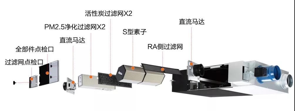 松下直流馬達全熱交換器及空氣凈化器部分型號,都帶有活性炭過濾網??諝饨涍^一道凈化顆粒物的過濾(物理濾網過濾/靜電除塵過濾),再經過一道活性炭過濾網,雙重過濾后,安心呼吸!