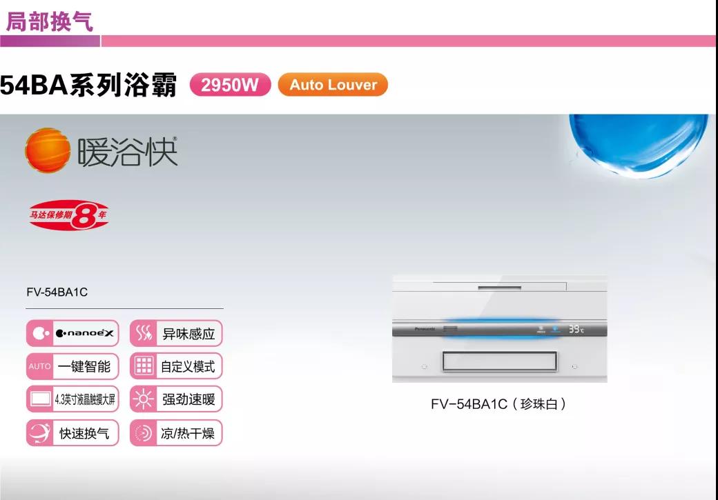 介紹完了40BQ系列,讓我們?cè)賮?lái)看看松下浴霸的扛旗大作——54BA系列。