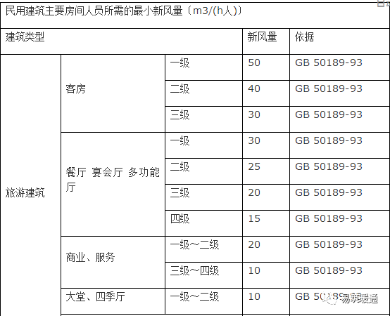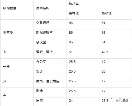 (2)人員所需新風(fēng)量應(yīng)滿足下表的要求,并根據(jù)人員的活動和工作性質(zhì)以及在室內(nèi)的停留時間等因素確定。