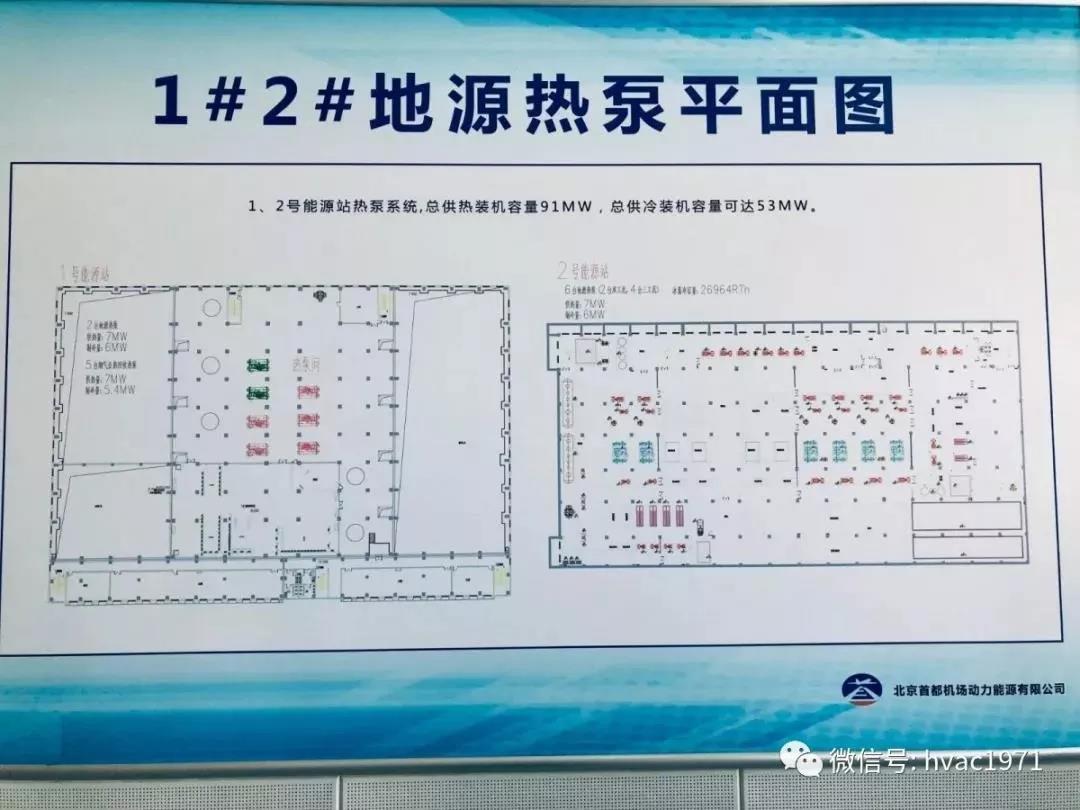 1,2號(hào)能源站熱泵系統(tǒng),總供熱裝機(jī)容量91MW,總供冷裝機(jī)容量53MW,將為機(jī)場(chǎng)公共區(qū)域257萬(wàn)m2的辦公場(chǎng)地供熱和供冷。