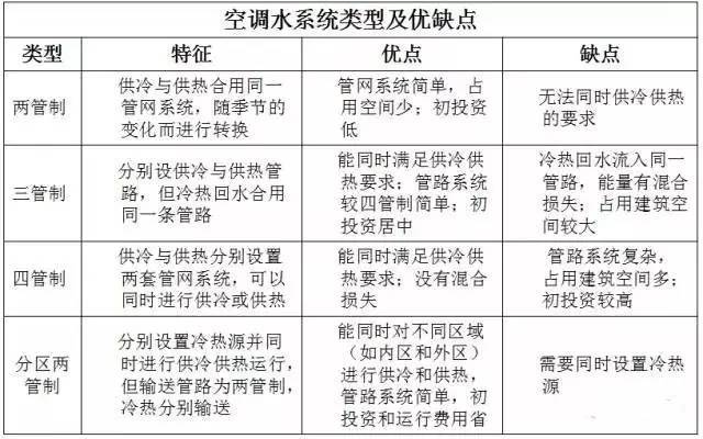3、按照水系統(tǒng)管道配置的多少,可以分為兩管制、三管制、四管制以及分區(qū)兩管制方式。